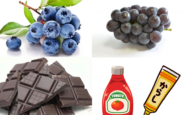 ・ポリフェノールが含まれているもの(ぶどう・ブルーベリー・チョコなど)