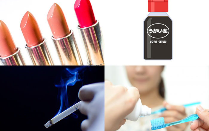 口紅の色素が着色の原因となるのと、タバコの煙に含まれる微粒子も、歯に吸着されやすくなります。
