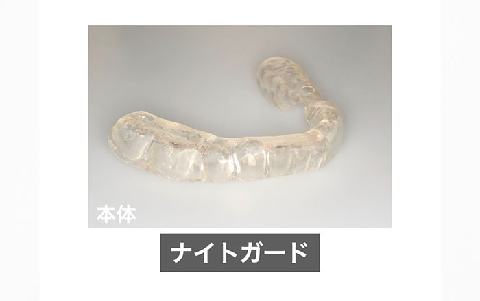 夜に使用するマウスピース(ナイトガード)を作成します。弾力があるマウスピースを装着することで、歯同士が強く噛み合うことを防ぎます。