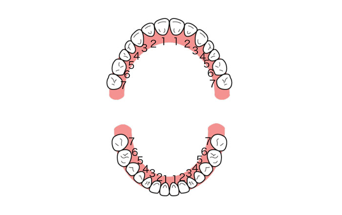 通常の噛み合わせは、前歯を1番と数えた時に、上下の6番目の歯の山と谷の位置を横から見て判断します。