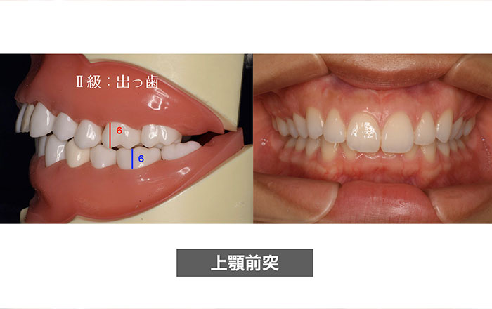 出っ歯の歯並びは上顎前突とも言われ、上の歯が前に出ていて、下の歯が奥に位置している状態です。