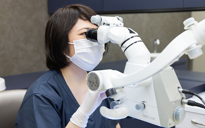 マイクロスコープという精密機器を使用することで、21.3倍まで拡大して精密治療をすることが可能です。