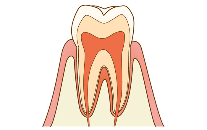 C2のむし歯は、エナメル質の内部にある、象牙質という部分にまでむし歯が達している状態です。