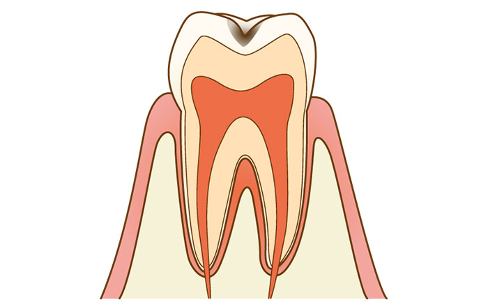 C1のむし歯は、エナメル質までむし歯が達している状態です。