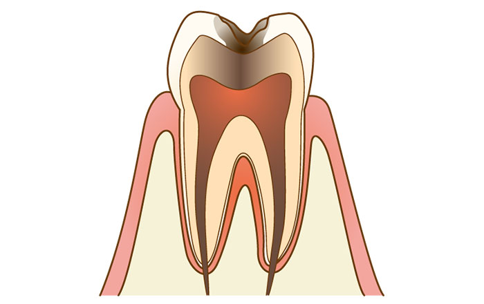 C3のむし歯は、歯髄という歯の神経にまで達したむし歯の状態です。歯根膜に炎症が起こって歯に大きな穴が空き、何もしなくてもズキズキと痛みます。