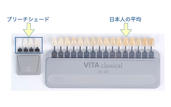 個人差はありますが、ホワイトニングでは自分の現在の歯の2~4段階白くできると言われています。