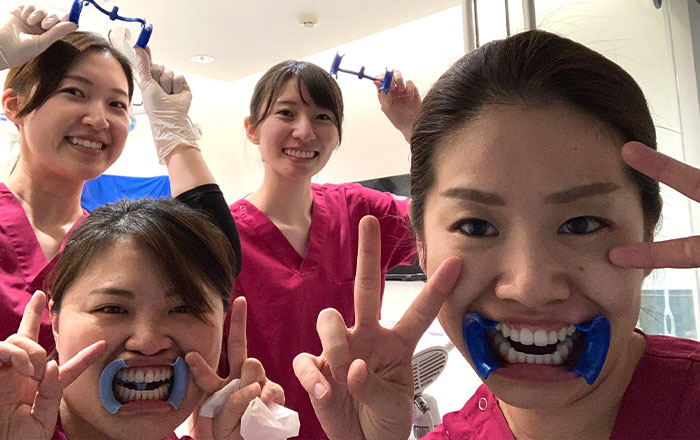 今回はホワイトニングの製品がリニューアルされたため、歯科衛生士間で相互実習を行いました。