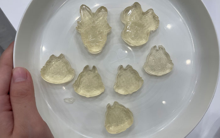 管理栄養士のグミ作りは何度も試作して臨んだのですが、1日目は気温が高かったせいか型から外れにくく、若干失敗してしまいました…