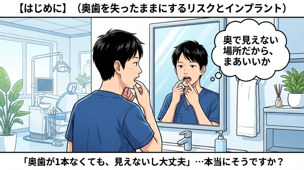 今回は、奥歯を失ったままにするリスクと、なぜ私たちが解決策として「インプラント」をおすすめするのか、その理由を詳しくお話しします。