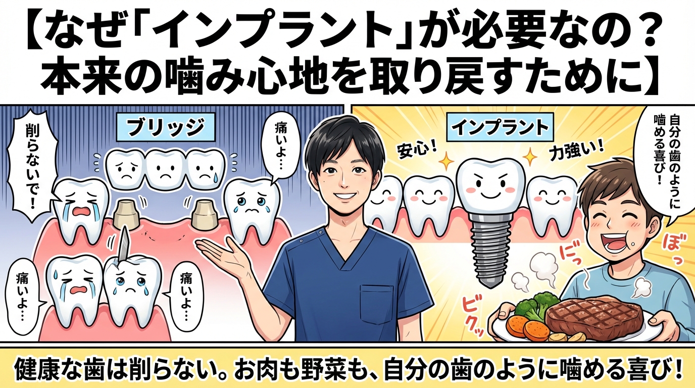 【なぜ「インプラント」が必要なの?本来の噛み心地を取り戻すために】
