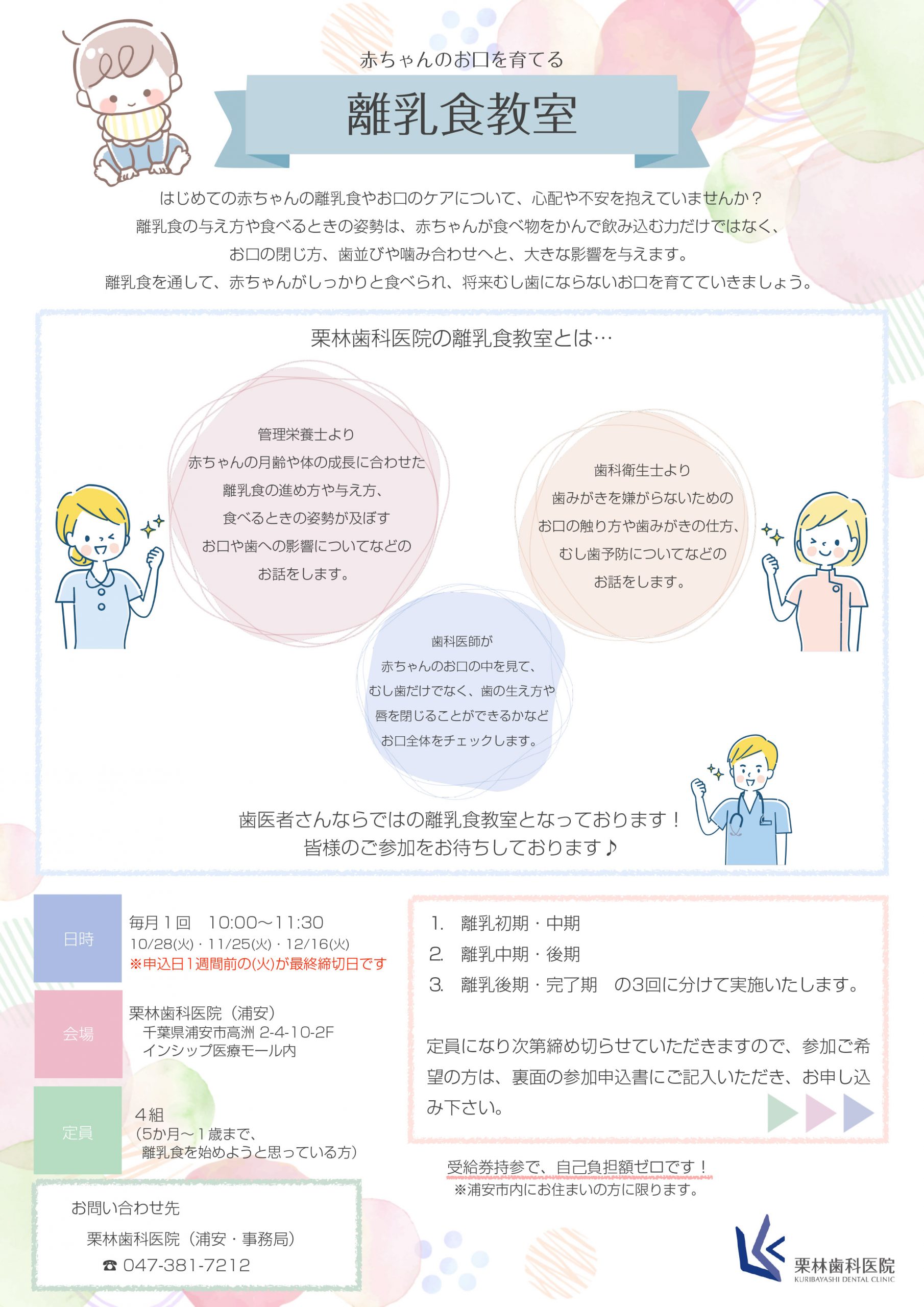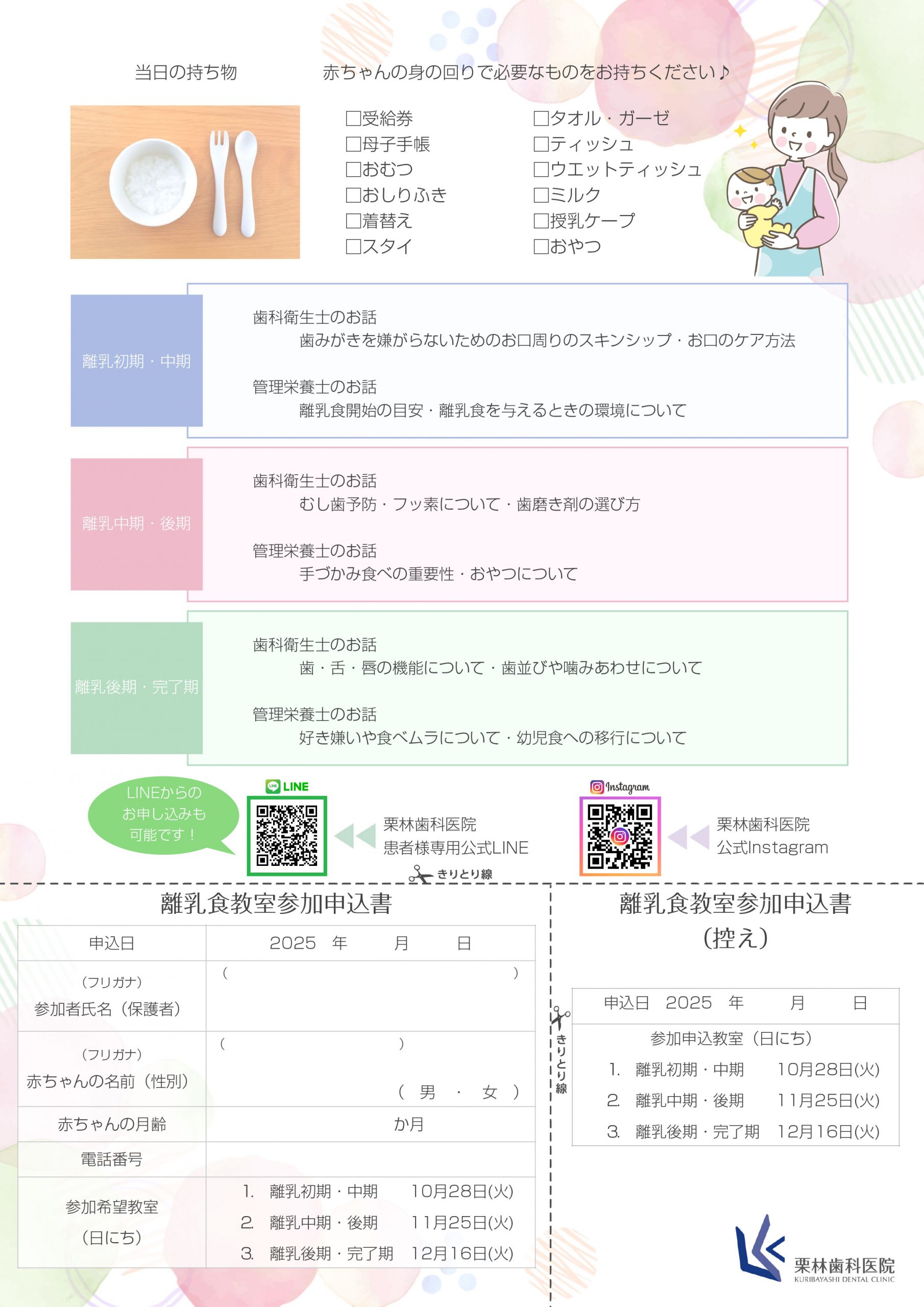 先日、栗林歯科医院の…Read more2025年4月〜6月の離乳食教室開催日のお知らせ